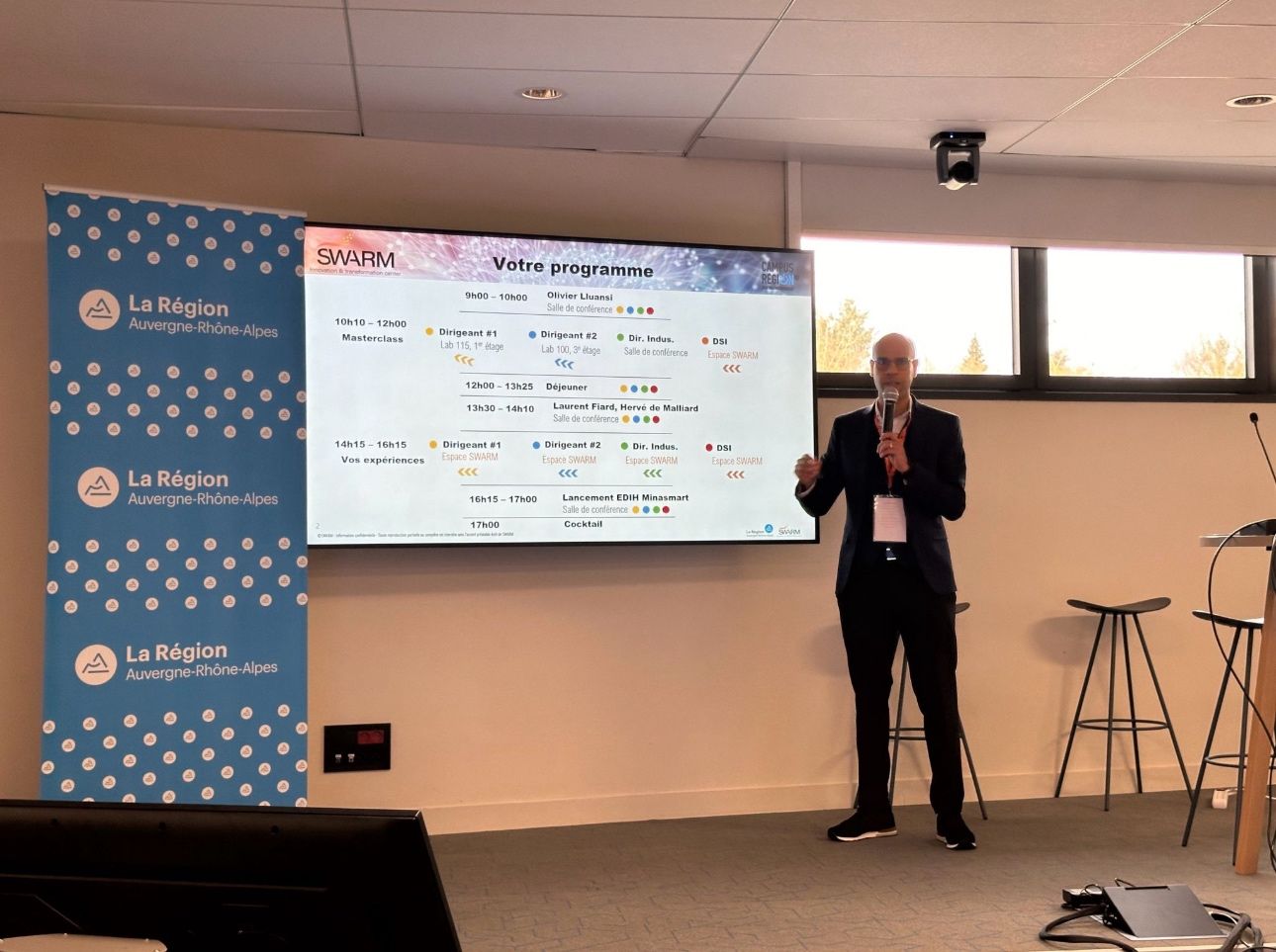 Nous poursuivons dans des ateliers par thèmes sur les grands enjeux de l’industrie. Cet après-midi, Laurent Fiard nous présente le nouveau « Baromètre de la transformation digitale des PME et ETI industrielles » de Visiativ. Je témoignerai avec lui de ces tendances avec le cas pratique de MGA Technologies et les acteurs de SWARM-itc.